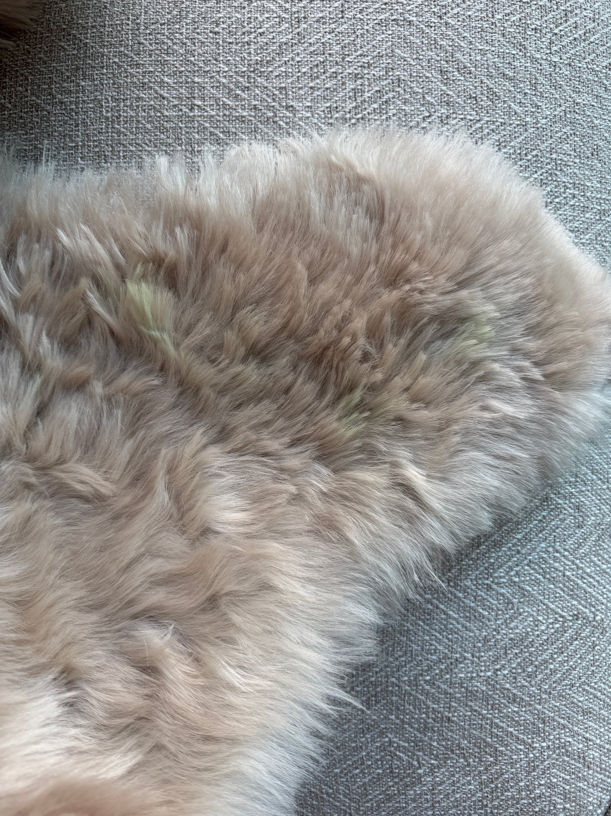 PLEASE NOTE: AS A NATURAL PRODUCT SHEEPSKIN MAY TRANSFER OILS, FIBERS AND DYES TO SOFT FABRIC/LEATHER FURNITURE.